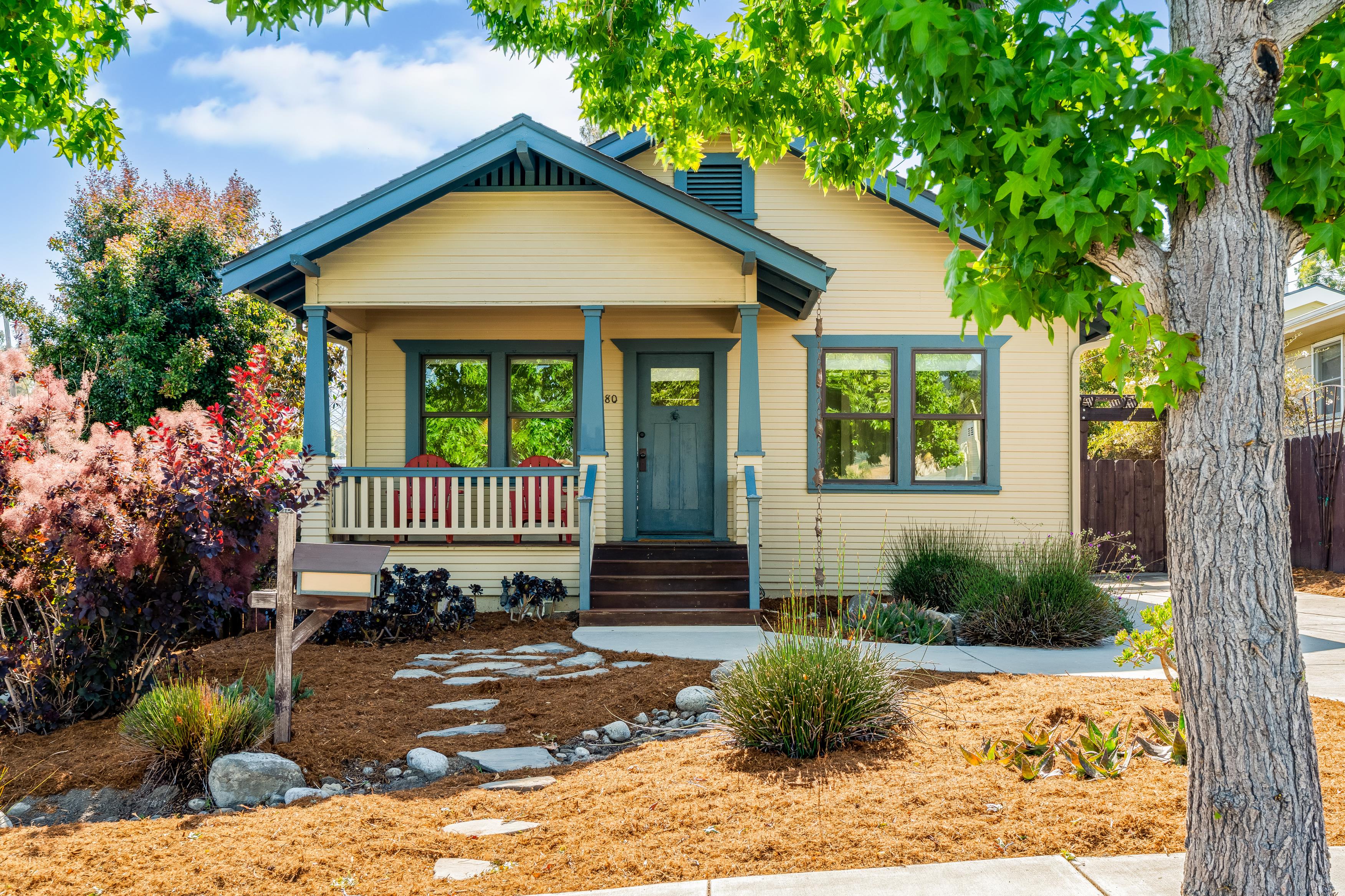 This vintage bungalow is abundant with thoughtful lovely updates for modern living. A few highlights include solid countertops, custom cabinets, bright and light main rooms, old-town SLO-style front and back porches, original double pocket parlor door to front bedroom. HVAC Heat Pump system includes air conditioning. Convenient laundry room off rear porch. Rear yard has private feel and a gracious patio that extends the home living area to an entertaining delight. The detached carriage house garage includes a workshop area and separate partially finished room for storage, WFH, or creative pursuits. Whimsical landscaping, charming mailbox, and acorn door knocker make this home complete.